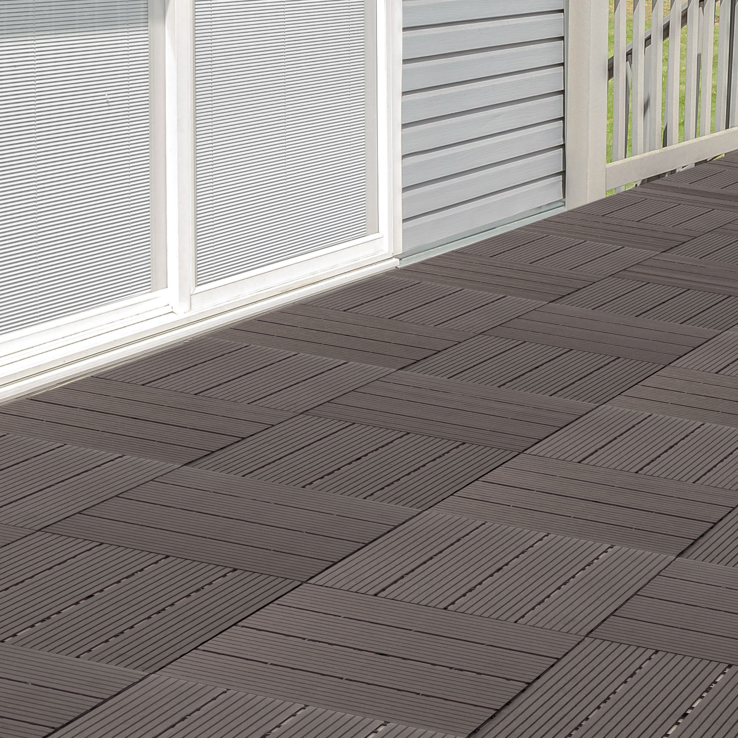 Patio Floor Tiles Set Of 6 Wood Plastic Composite Interlocking Deck Tiles For Outdoor Flooring Covers 5 8 Square Feet By Pure Garden Brown Walmart Com