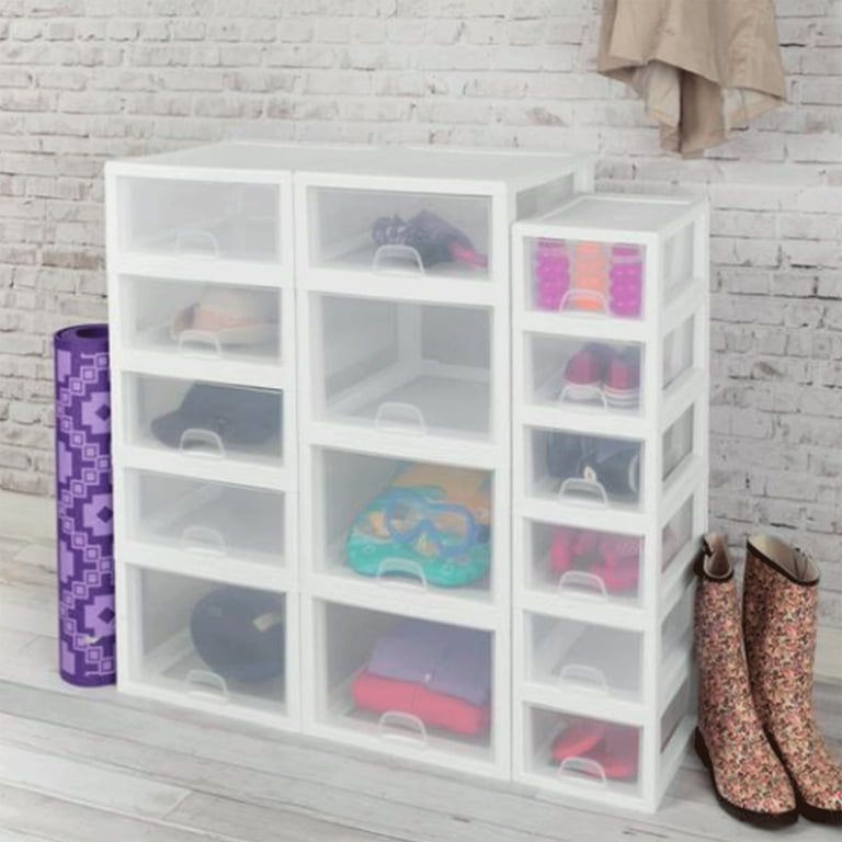 Sterilite 27 Qt Stacking Storage Drawer Stackable Plastic Bin Drawer To Organize Shoes And Clothes In Home Closet White With Clear Drawer 4 Pack Target
